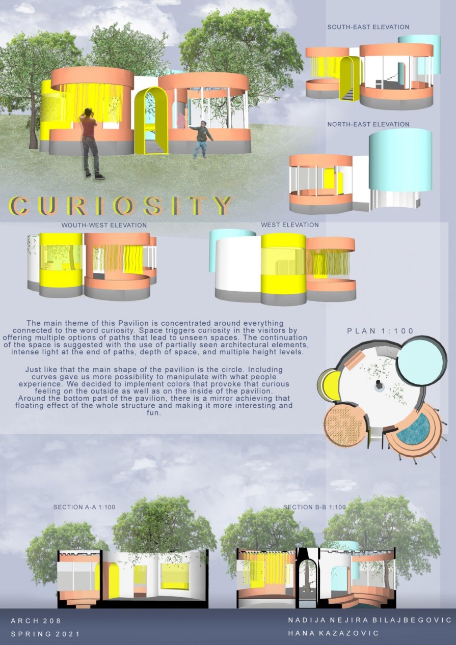 The brief for the spring semester 2021 course was to create a pavilion for the chosen emotion. The process of designing the pavilion saw students push the boundaries, of conventional brief, away and approached the design not form the client/brief, but through the process of examining the possibilities of the tangents connected to the emotions that they chose to represent. Students combined the knowledge gained thru the research on the topic of the specific emotions with their designing skills and the outcome was a collection of interesting representations of unimaginable feelings translated into form that is easily comprehendible: the pavilion.