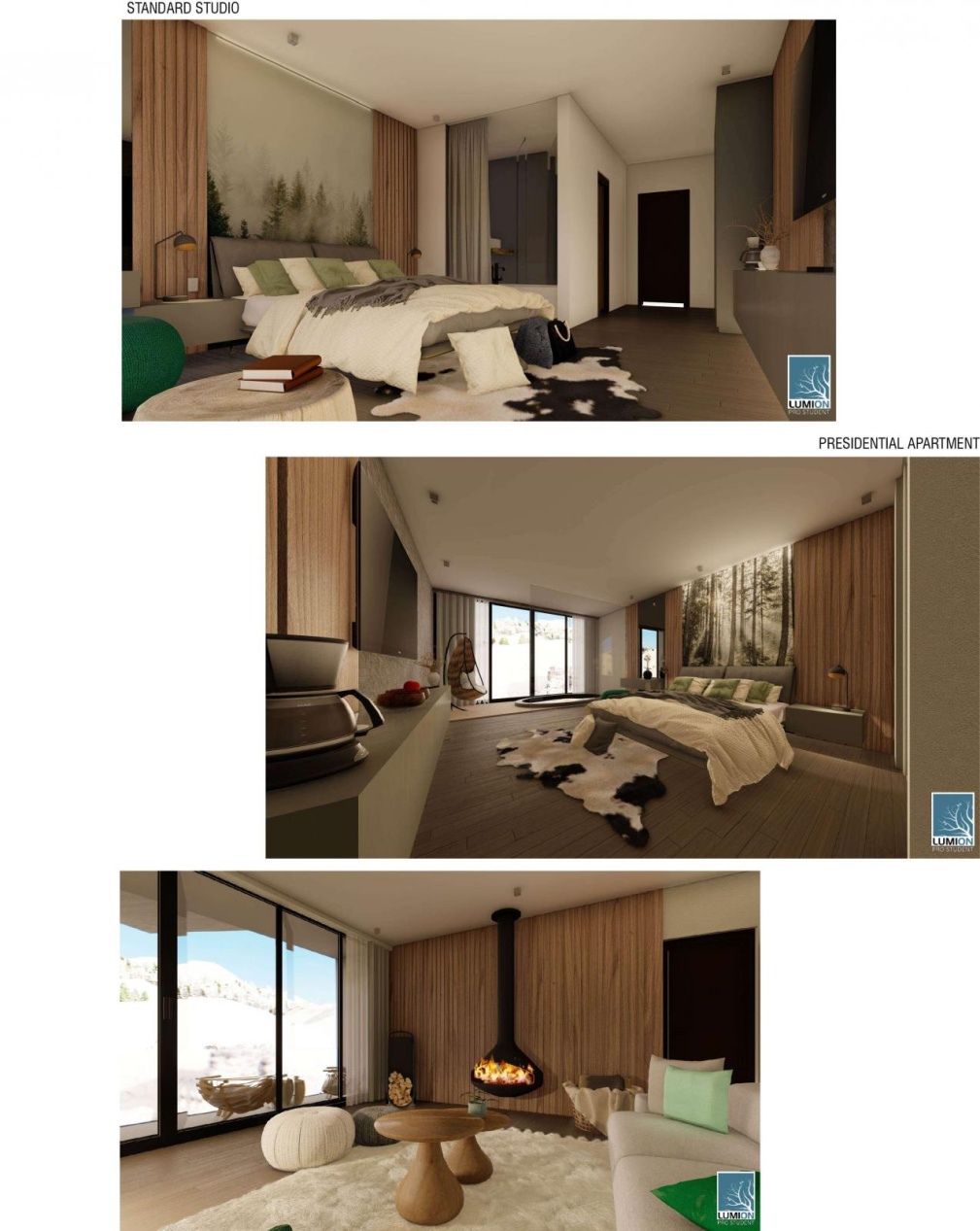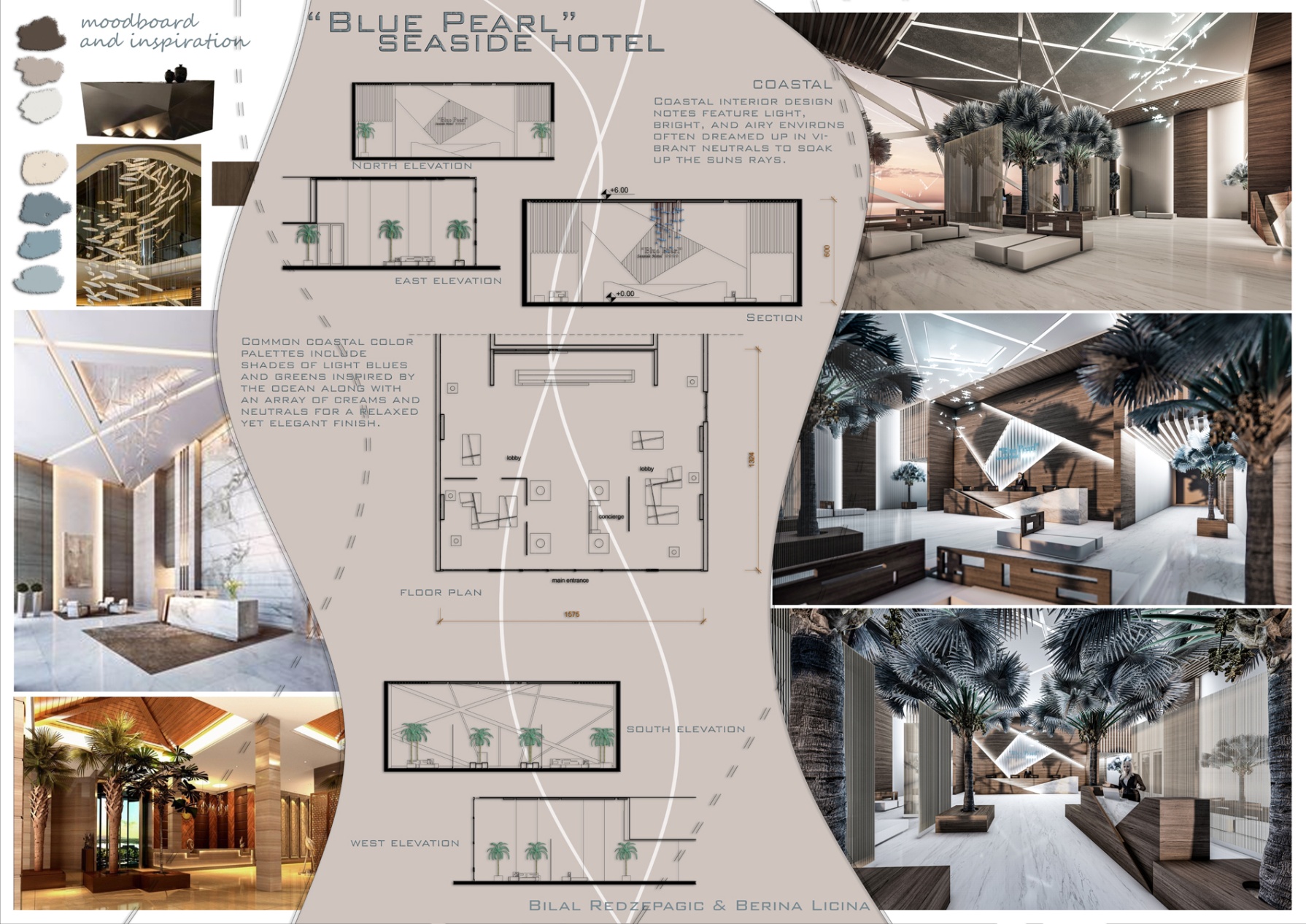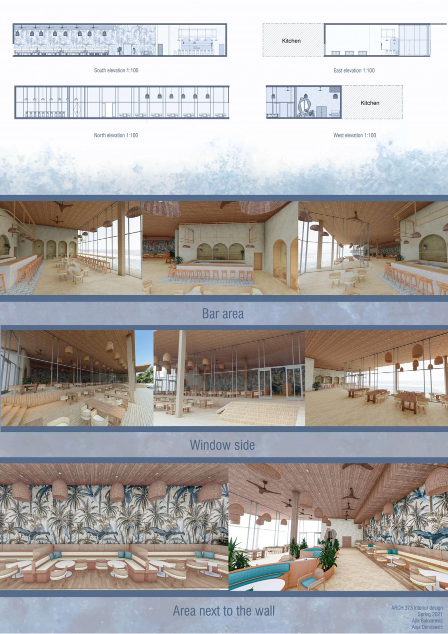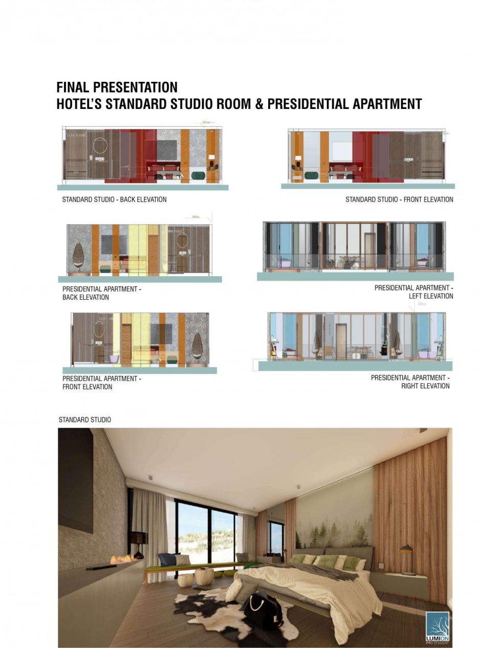 The brief for the Spring semester 2021 course was to create the interior space for a upscale hotel, one mountain and one in seaside setting. The students understood the development of the different spaces accommodating specific needs and finely creating beautiful interior spaces. They combined the theoretical and practical concepts finding best solutions for the specific areas of the given spaces.