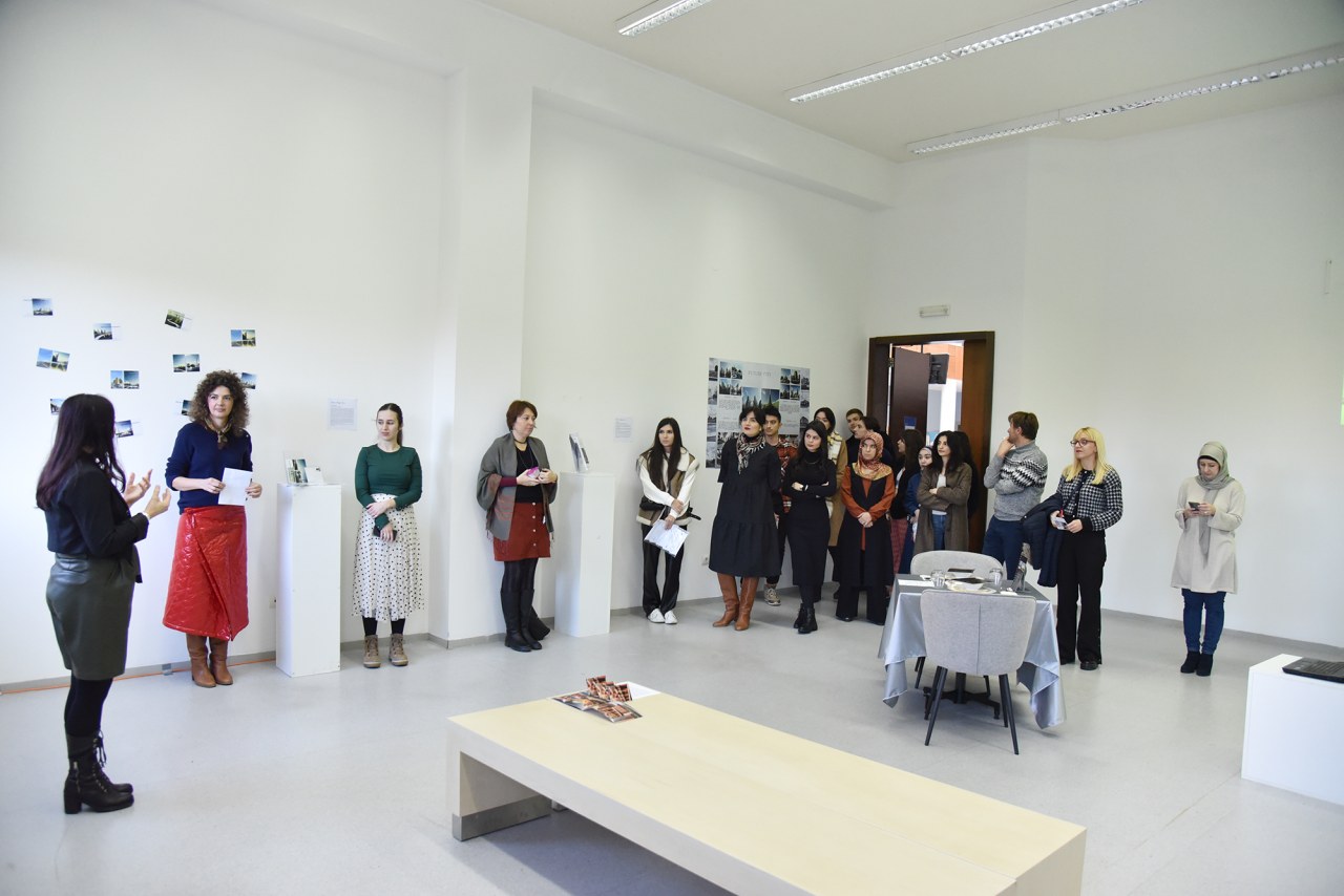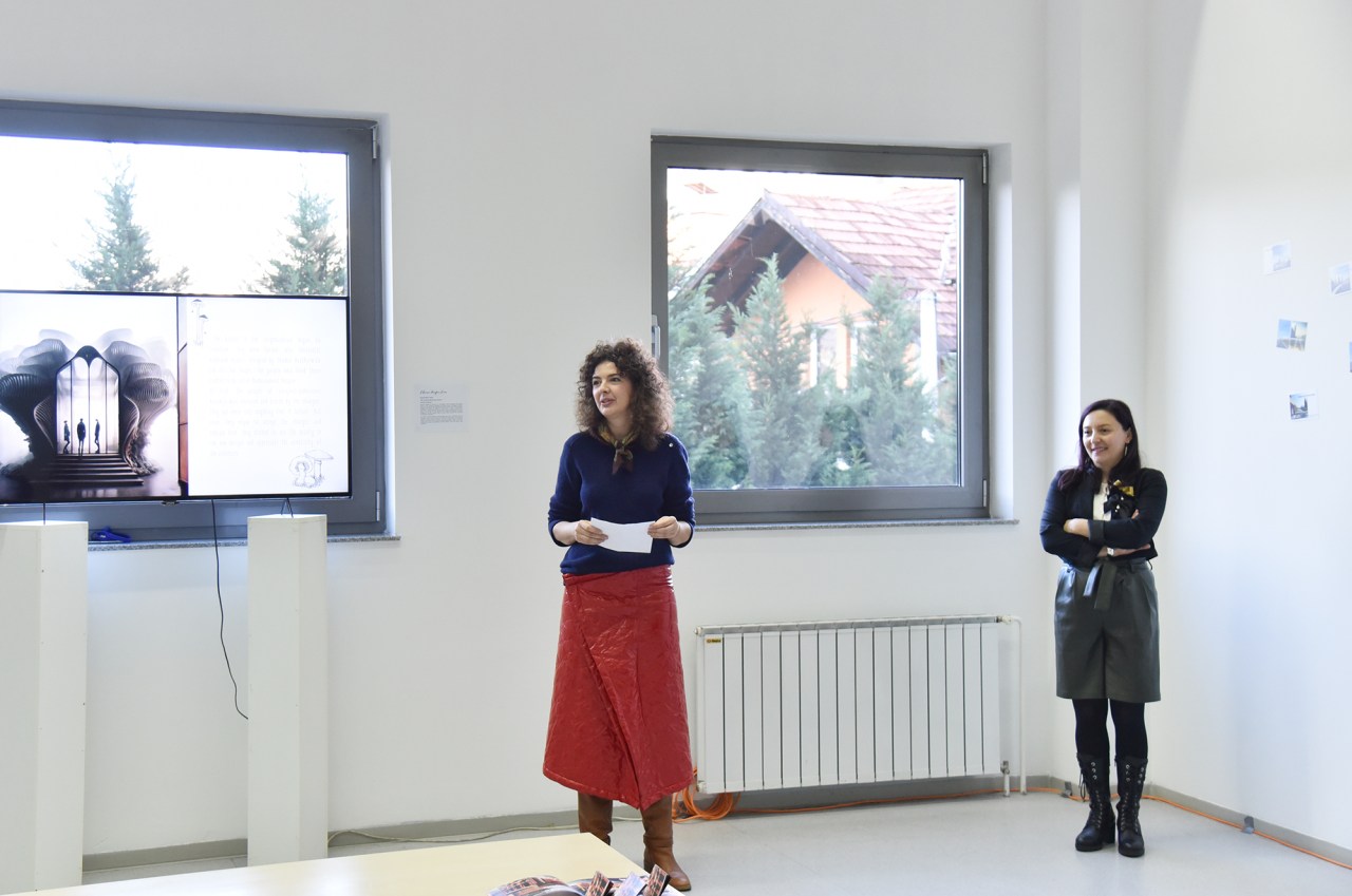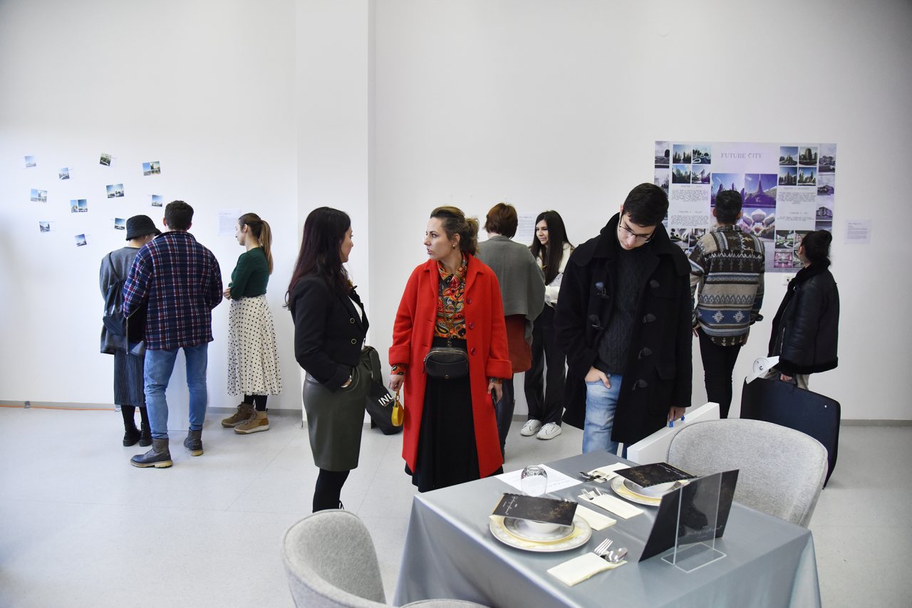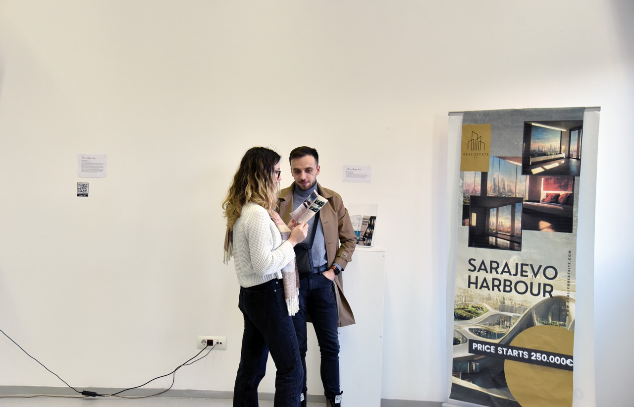 The opening speech was delivered by Prof. Dr. Meliha Teparić, the IUS Art Gallery Director. She welcomed the attendees to the new beautiful space of the IUS Art Gallery and underlined that the student artwork exhibited is like a dream that might become real one day in the future. Asst. Prof. Dr. Lamila Simišić-Pašić thanked her students for their hard work and explained that architects face many challenges today. She also pointed out that architects learn all the time especially when it comes to new technological innovations. Artificial Intelligence was part of the students’ designing process and, in this way, they benefit from new methods, tools and technology.