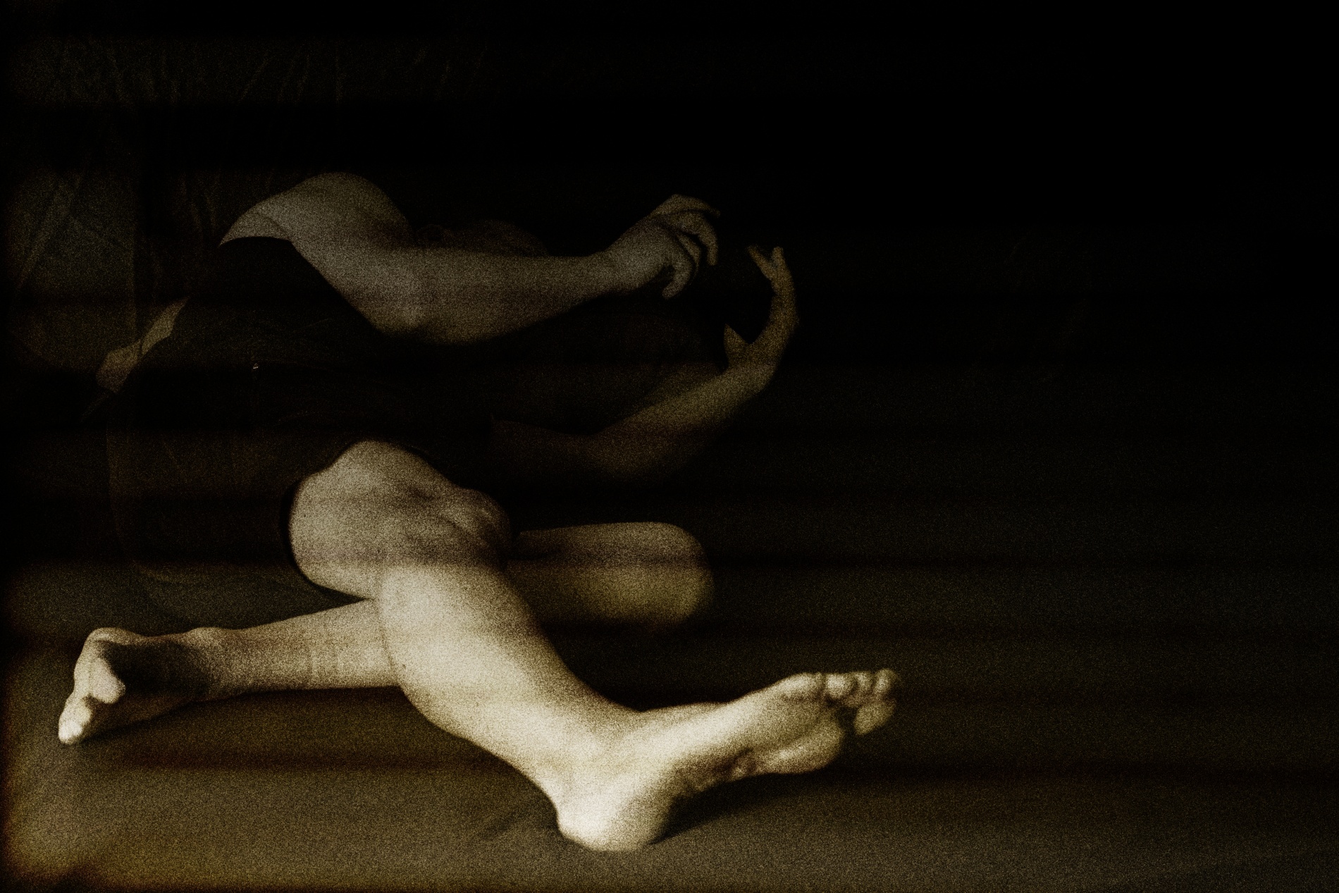 Through extended exposure times and carefully controlled lighting, time itself becomes a visible component of the image, while the body emerges as a process rather than a stable object. The works resist documentary interpretation, instead positioning photography as a self-sufficient medium that does not merely record a state, but actively produces it.